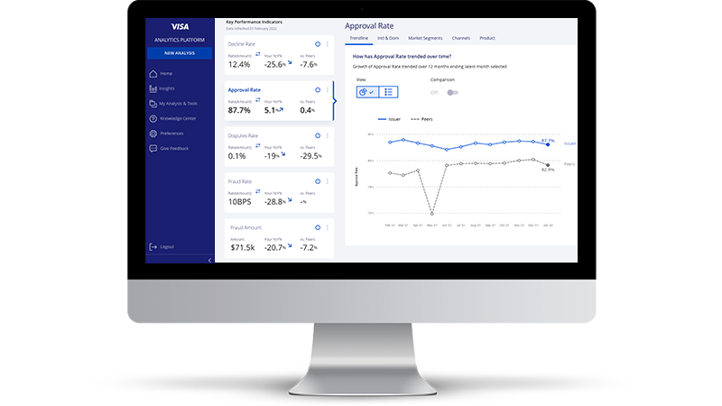 Visa Analytics Platform provides powerful business intelligence through detailed, anonymized peer benchmarks¹ – empowering you to quickly find opportunities to help improve performance and become top-of-wallet.