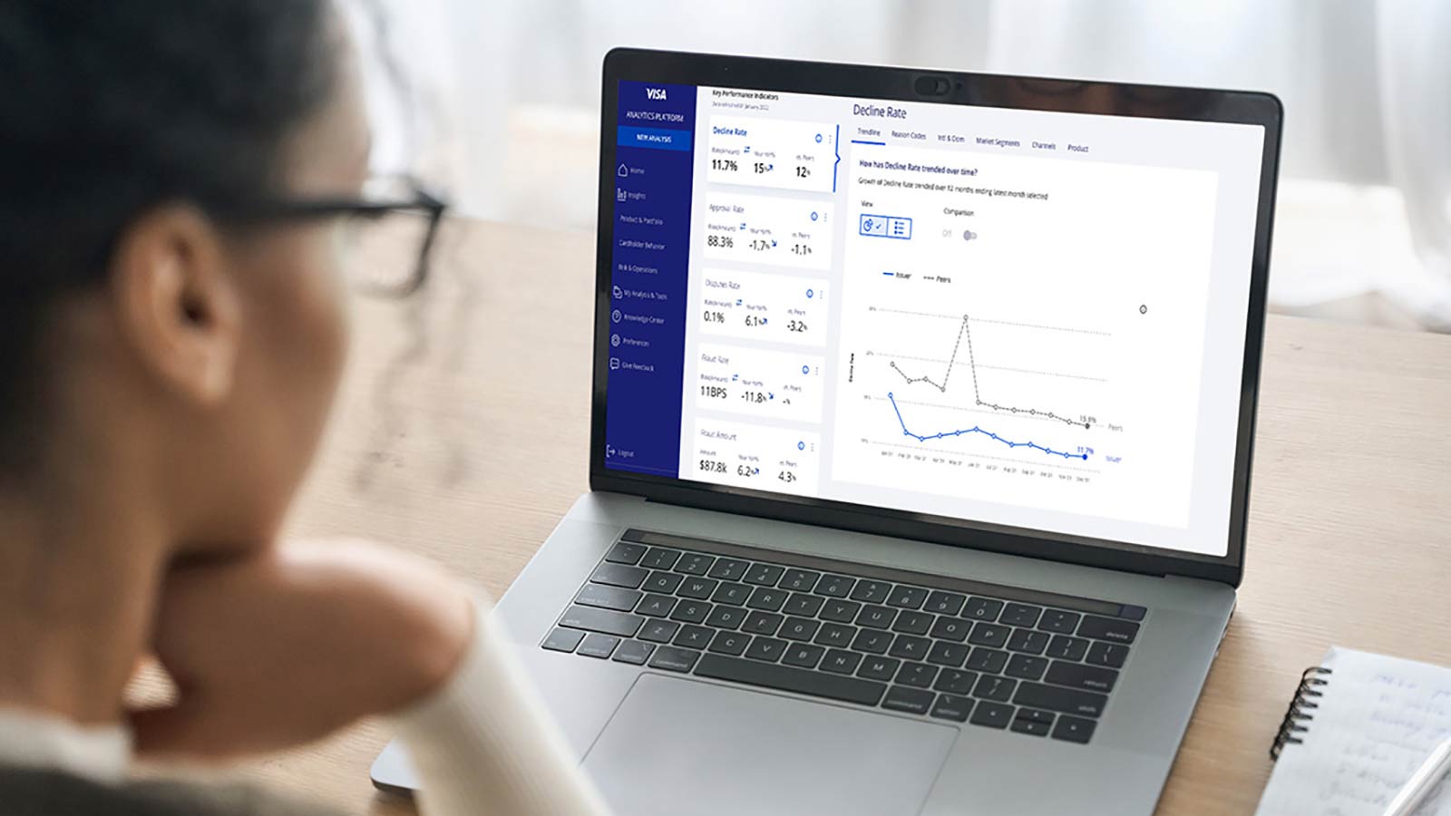Visa Analytics Platform is a web-based, self-service analytics solution that puts payments data and insights at your fingertips. Our powerful peer benchmarking,¹ easy-to-understand dashboards, and customizable reports empower users across your organization to gain actionable payments intelligence — helping you make faster, more informed business decisions.
