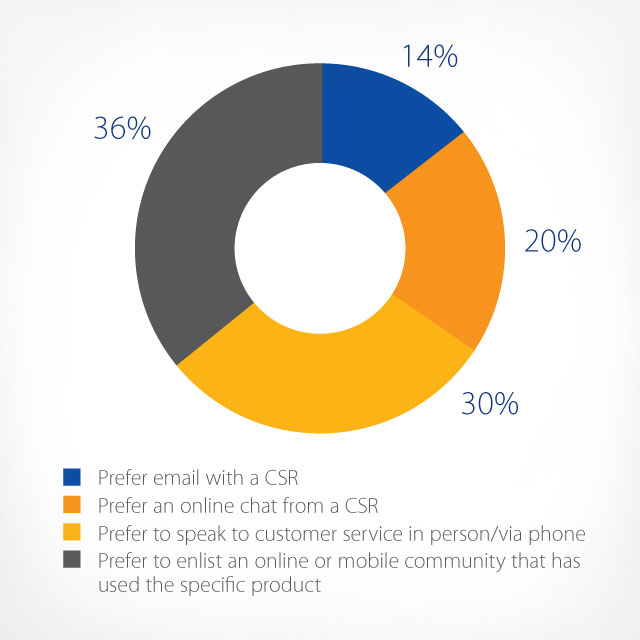 Millennials prefer to email or chat with a customer service representative instead of speaking live. They reach out to others who have experience with the same product, via online and mobile communities, to help solve problems2.