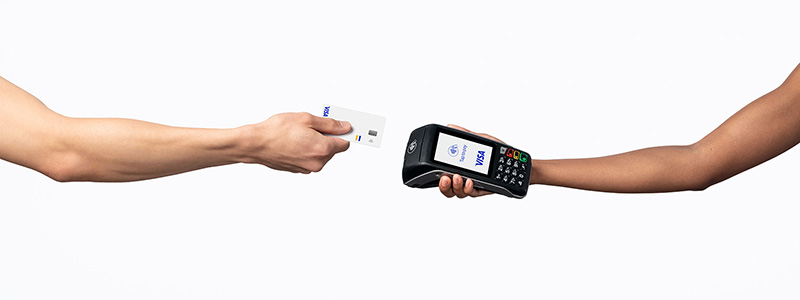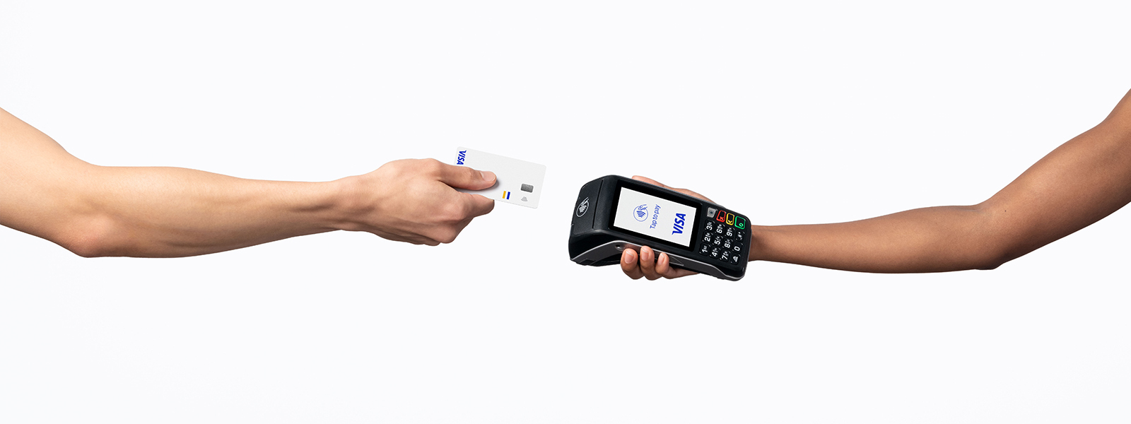 An image of a mobile phone and payment terminal with Visa contactless payment came through on the displays.