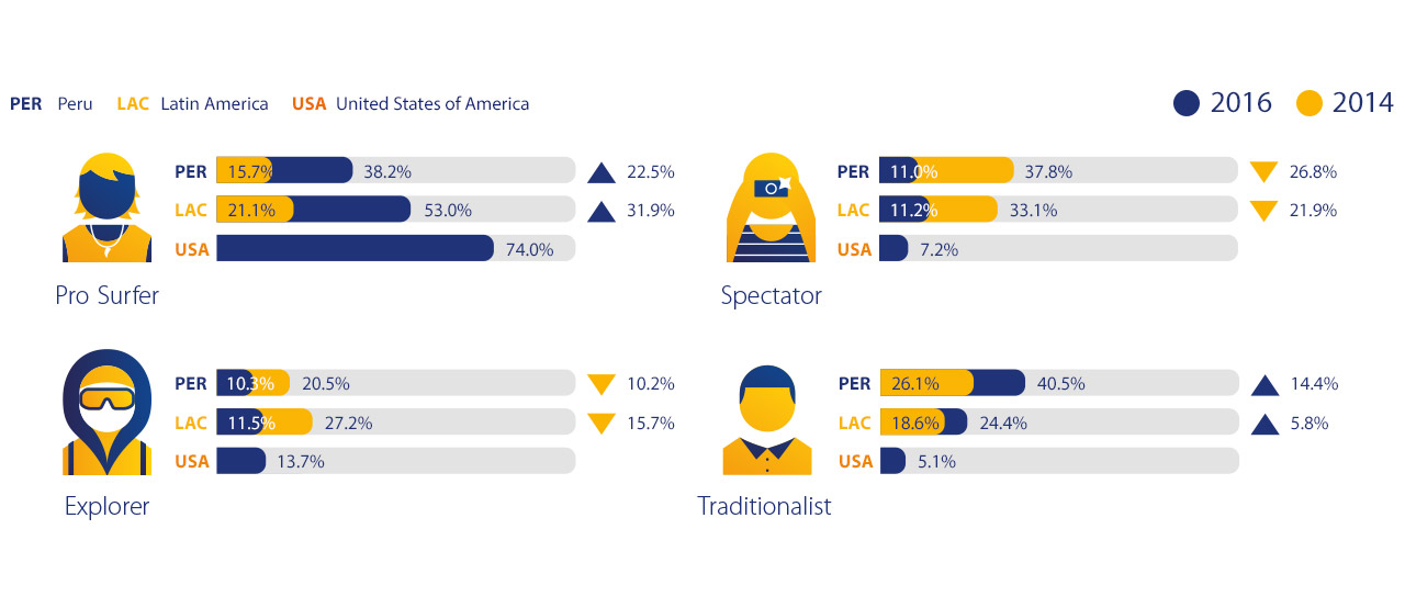 40.5% of Peruvians fall into the Traditionalist profile, meaning that they almost never shop online.