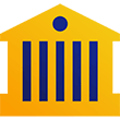 Illustration of a merchant storefront with blue and white striped awning.