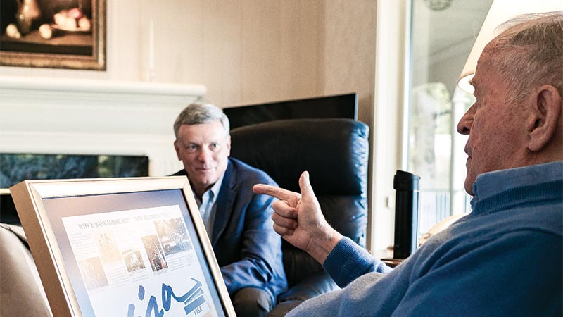 Al Kelly, Visa Chairman and CEO, visits with Dee Hock, Visa Founder and CEO Emeritus